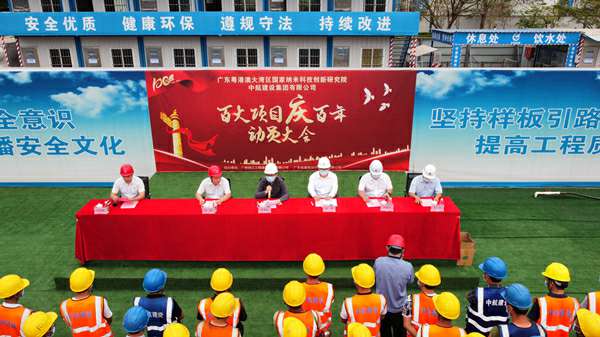 2021年3月29日上午,“百大项目庆百年”动员大会在集团公司承建的广州纳米生物安全中心总部园区一期项目现场隆重举行。建设单位广州纳米产业投资有限公司总经理李佩弦,广州珠江工程建设监理有限公司副总经理李晓光、分公司副总经理赵杰,广东省建筑设计研究院有限公司院副总工程师郭勇,长沙轩昂智能家居系统有限公司南方工程有限公司总经理、项目总指挥徐刚,项目书记招国樑以及各专业分包单位相关人员参加活动。